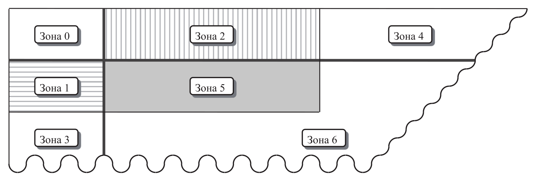 Рисунок 4 – Зонная организация рабочих листов «Альтернативы» и «Политика выбора» PSA-книги. В ходе работы зоны 1, 5 могут иметь нулевую высоту, а зоны 2, 5 – нулевую ширину