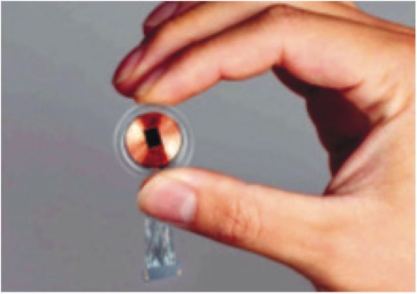 Устройство Neuralink использует тонкие гибкие нити, оснащенные 1024 электродами, которые записывают активность нейронов, отправляющих сообщения по всему телу, управляя таким путем практически всеми функциями человека. Гаджет размером с монету (рис. 6), включает специальный чип внутри, который обрабатывает эти сигналы и передает их на цифровое устройство через стандартное беспроводное соединение Bluetooth — новый шаг в развитии МКИ. Хирургические роботы тщательно вплетают эти нити в кору головного мозга, отвечающую за процессы более высокого уровня, такие как обучение и эмоции, чтобы обеспечить точное размещение электродов.