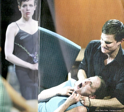 Анализируя освещение гендерных проблем в пьесе Т. Ланоя, стоит сказать, что в первом действии пьесы конфликт возникает также между патернальным стилем правления Ээта и жаждой обновления и свободы юной и ещё наивной Медеи, в какой-то степени есть аллюзии на конфликт матриархата и патриархата. Во второй части перед нами разворачивается современная гендерная борьба, семейная война (рис. 3), жертвами которой становятся дети, но в новой версии убитые обоими родителями, объединенными теперь общей виной. Противостояние Медеи и Ясона во второй части вполне укладывается в современные конфликты «войны полов».
