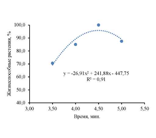 Рис. 2. Влияние экспозиции в стерилизующем растворе на долю жизнеспособных растений