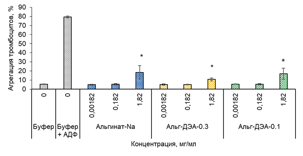 Цель настоящей работы заключается в комплексном исследовании водорастворимых производных альгината натрия, модифицированного этилендиамином (Альг-ДЭА), содержащих свободные аминогруппы, включая синтез, реологические свойства растворов и анализ влияния in vitro производных альгината натрия на плазменные и клеточные компоненты крови человека.
