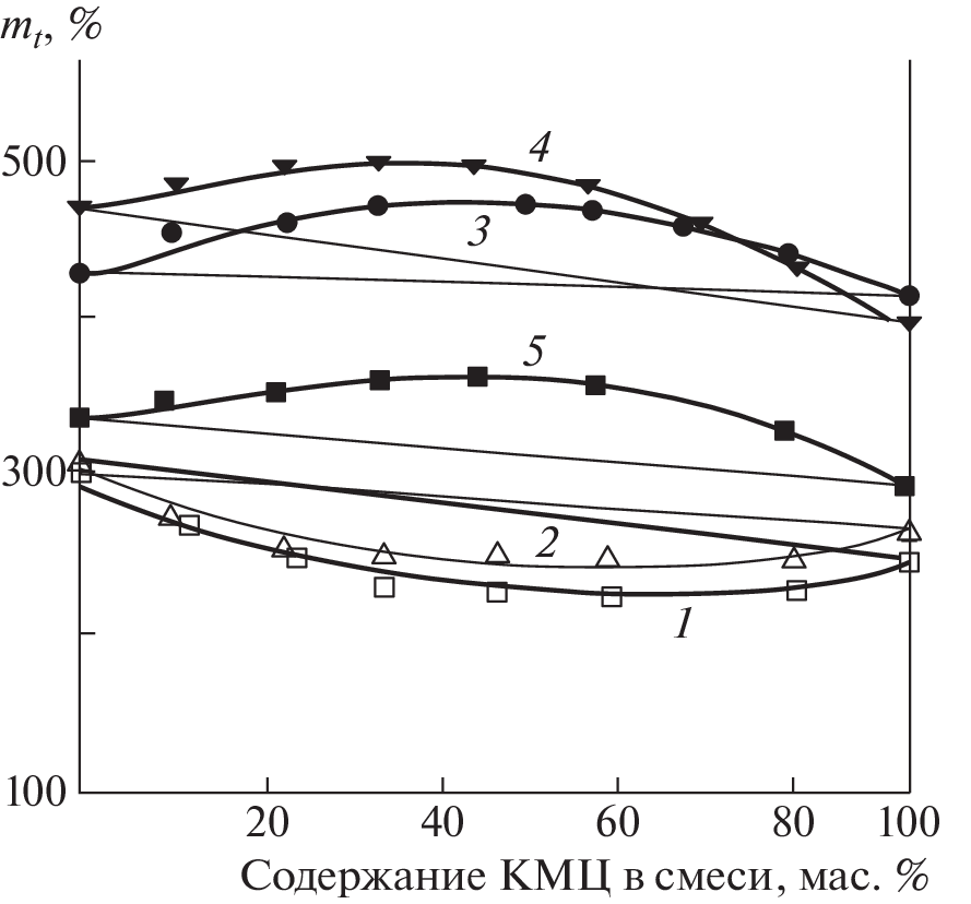 Structuring in solutions of the individual polymers sodium N-succinyl chitosan and sodium carboxymethylcellulose and their mixtures has been experimentally evaluated. The possibility of controlling both the degree of enzymatic degradation and other properties of materials obtained on their basis is shown. In binary mixtures, supramolecular structures represented by homoaggregates of both polymers are likely to appear, which are characterized by an increased packing density and a slow rate of chemical and biochemical transformations. The mixing of N-succinyl chitosan and carboxymethylcellulose sodium salts in solution enhances aggregation processes. The type of aggregates (homo- or hetero-) is determined by the concentration of the polymers in the initial solution: homoaggregates are formed in dilute solutions of the mixture (with a concentration on the order of the entanglement-network formation concentration), and mixed heteroaggregates appear in more concentrated solutions. It has been established that the stress–strain characteristics, the degree of enzymatic hydrolysis increases, and the sorption capacity of film materials obtained from such mixtures are enhanced (compared to additive values) when heteroaggregates appear in a solution of polymer mixtures, whereas all these parameters have reduced values when homoaggregates are formed in solutions of polymer mixtures.
