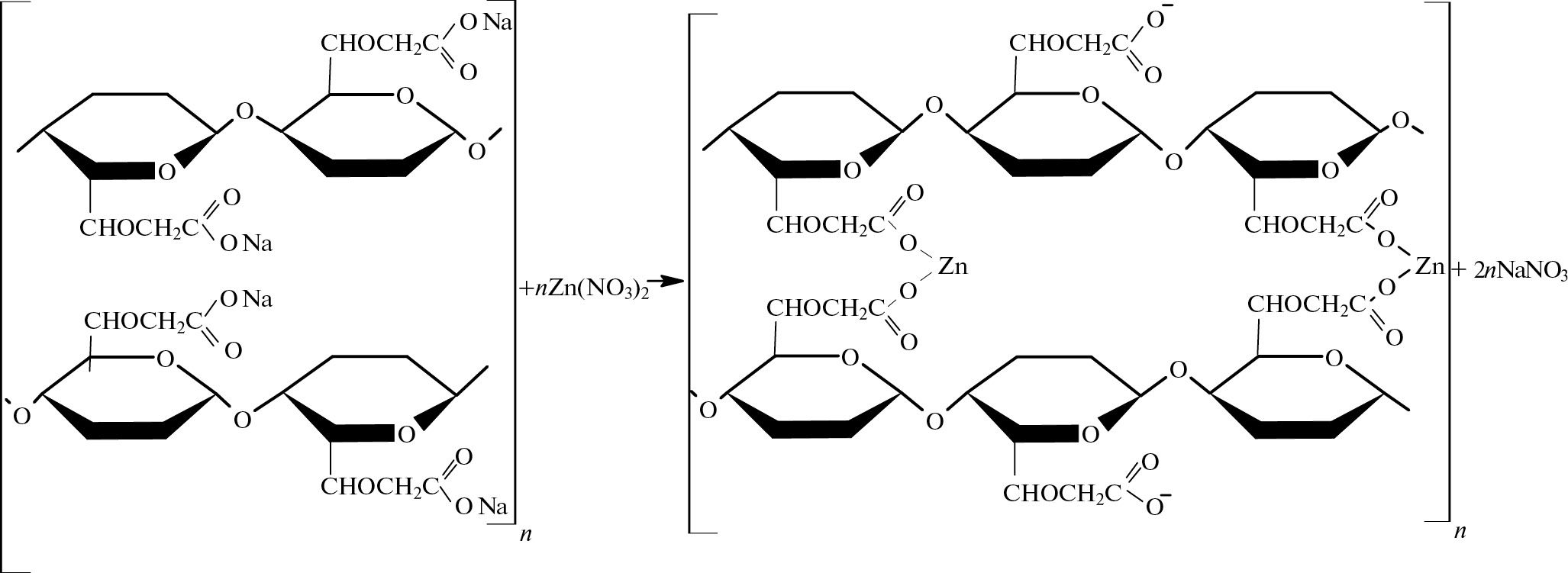 2[C5H7O4–CH2OCH2COONa]n + nZn2+ → → [Zn(C5H7O4–CH2OCH2COO)2]n + 2nNa. (1)