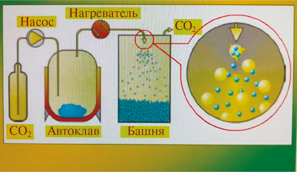 Диоксид углерода, закись азота, этилен и некоторые другие газы в сверхкритическом состоянии приобретают способность растворять многие органические вещества [14]. Свойства сверхкритического СО2 как растворителя можно регулировать: при повышении давления и/или температуры его растворяющая способность значительно увеличивается [15].