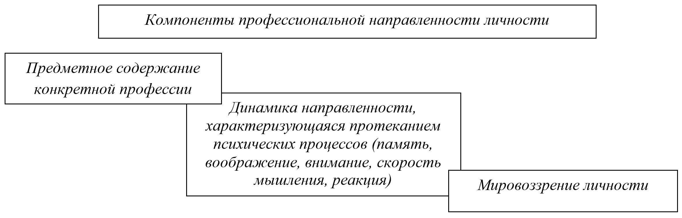 Интересно, что, обращаясь к понятию «профессиональная направленность личности», ученые и исследователи прибегают не к феноменологическим рассуждениям, а к поиску компонентов и структуры данного феномена. Скорее, это только подтверждает актуальность проблемы развития профессиональной направленности у обучающихся и современной молодежи. Так, Э.Ф. Зеер в своей структуре профессиональной направленности выделяет четыре основных компонента: