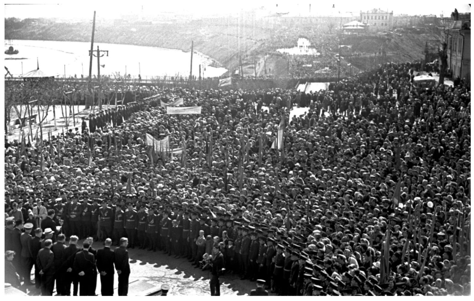 Важно подчеркнуть, что послевоенный период характеризуется смещением вектора внимания властей от увековечевания знаменательных дат революционной эпохи на процесс мемориализации событий Великой Отечественной войны, что привело к изменению характера коммеморативных практик: это уже были не митинги и демонстрации, а «минуты молчания» или ритуал посещения военных мемориалов молодоженами с непременным возложением цветов к памятникам.