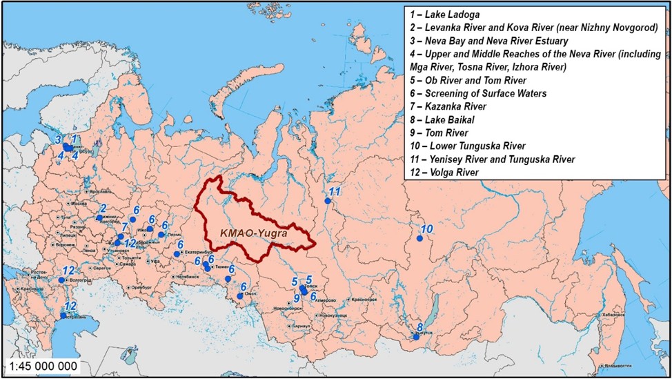 Given the paucity of research data regarding microplastic contamination in the aquatic ecosystems of KhMAO-Yugra, and considering the significant number of surface water bodies and watercourses characterized by substantial volumes of water mass, it is necessary to emphasize the high degree of relevance of investigating this problem.