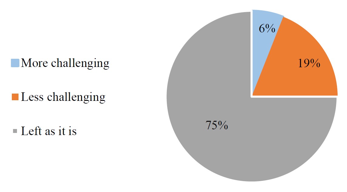 At the same time, the following responses were received to the question "Should the next course be made more challenging, less challenging, or left as it is", as shown below (Fig.).