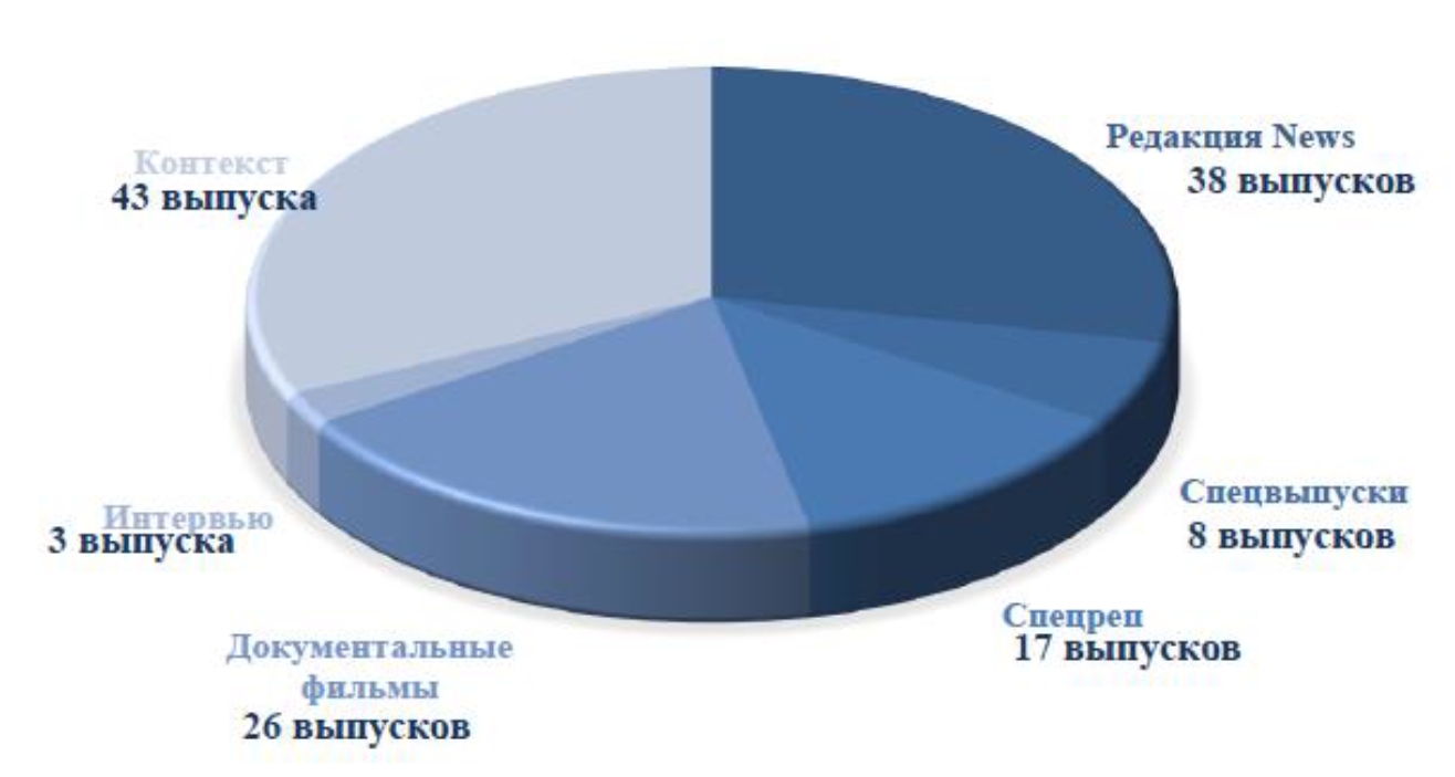 В начале своего вещания лидирующие позиции по количеству выпусков занимал формат «Редакция.News», так как он выходил раз в неделю и освещал самые главные события мира и страны. Следующей позицией шел формат «Документальные фильмы» – тематические выпуски, посвященные какой-то конкретной проблеме.