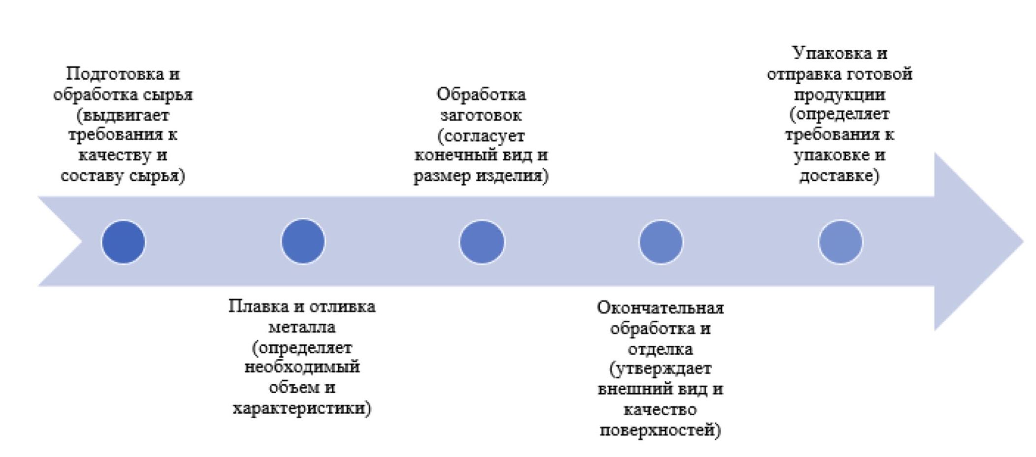 Рис. 1. Процесс взаимодействия с потребителями в процессе производства продукции в ООО «ВКМ-СТАЛЬ».