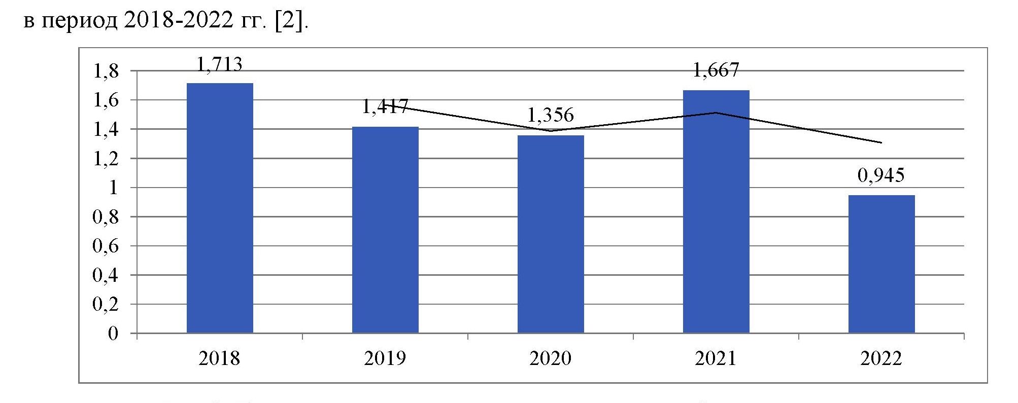 Рис. 4. Динамика импорта новых легковых автомобилей на территории Российской Федерации за 2018 – 2022 гг., млн. шт.