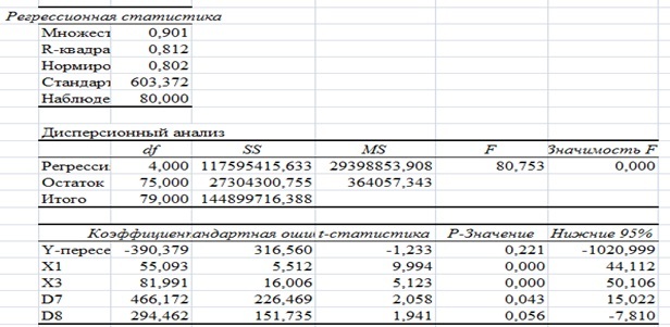 Рис. 2. Результаты регрессионного анализа.