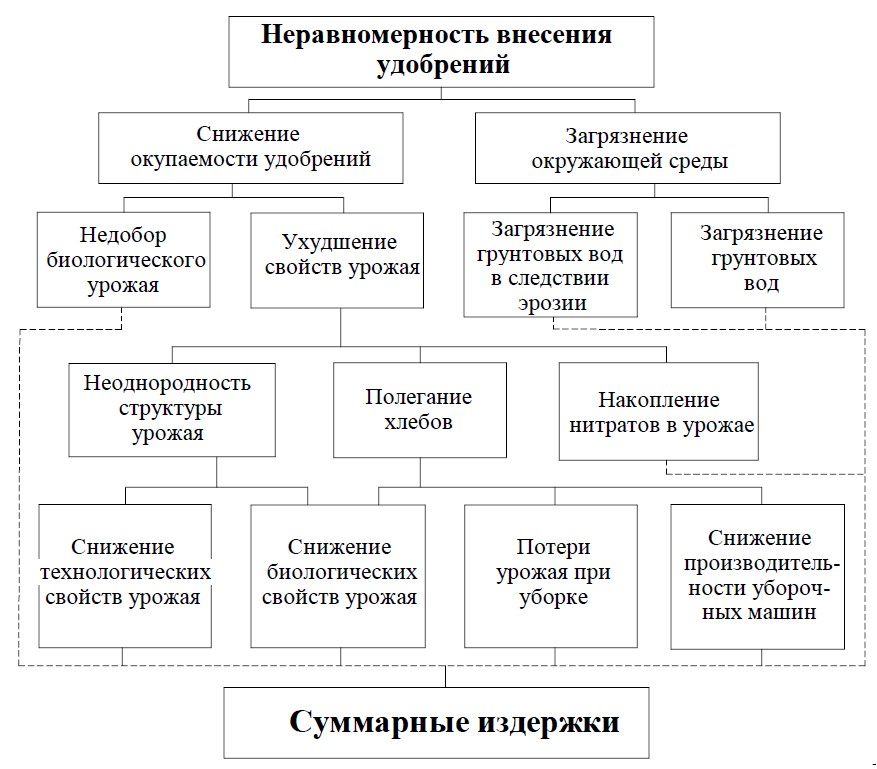 Рис. 1. Структурная схема издержек от некачественного внесения удобрений.
