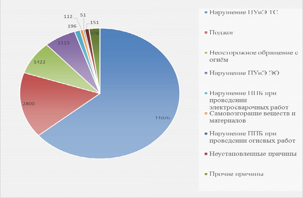 Основные причины пожаров транспортных средств в 2019 – 2021 гг. приведены в таблице 4 и показаны на рисунке 1 (2021 г.) [1].
