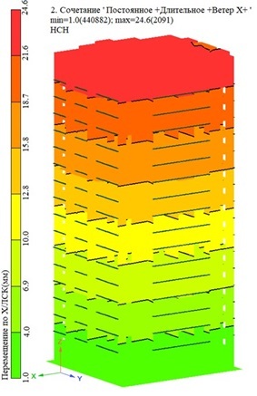Горизонтальное перемещение верха конструкции по X, см | 2,45 | 5,10 |