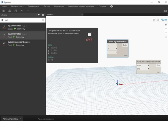 Определение точки начала координат в ПК Revit с помощью языка визуального программирования DYNAMO