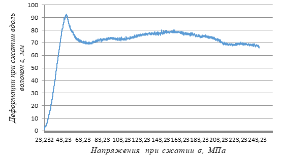 Рис. 2. Диаграмма «напряжения - деформации» при сжатии вдоль волокон.