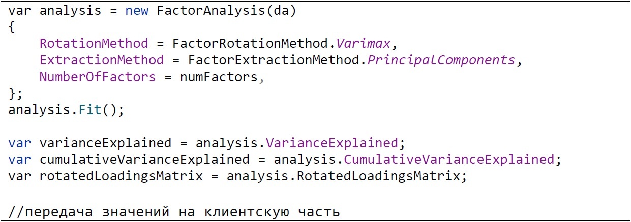 Рис. 7. Проведение факторного анализа.