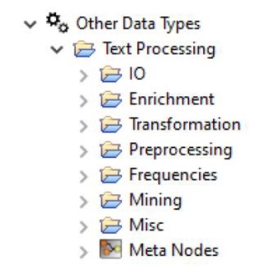 На рисунке 1 представлен репозиторий узлов обработки и анализа текстовой информации KNIME.