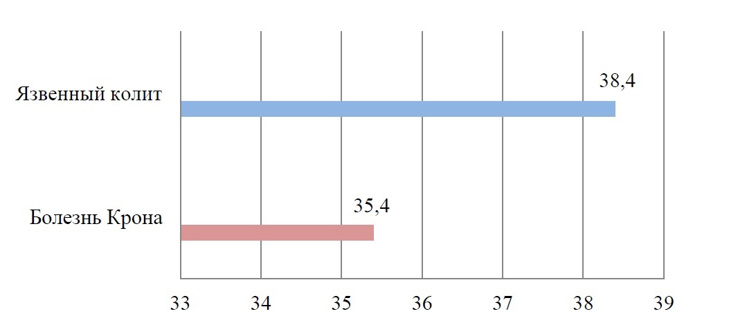 Рис. 2. Средний возраст дебюта воспалительных заболеваний кишечника, годы.