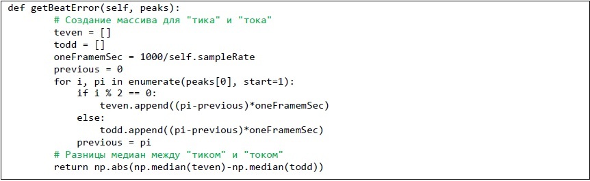 Рис. 13. Код функции нахождения пиков в аудиофайле.