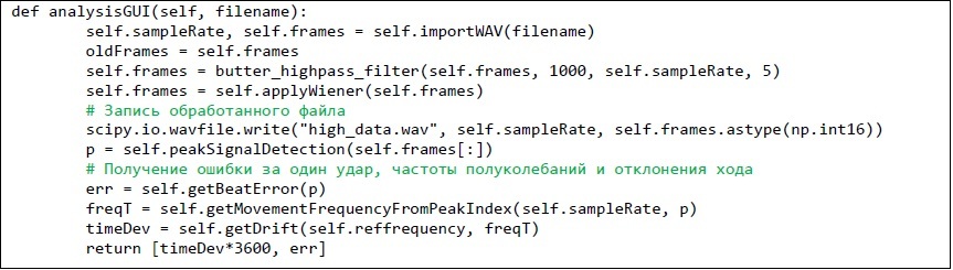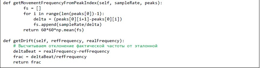 Итоговый фрагмент кода, объединяющий в себе все вышеперечисленные функции и возвращающий значение отклонения хода за сутки и одни удар, представлен на рисунке 17.