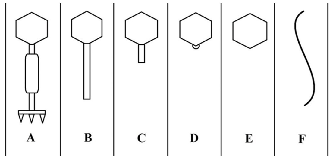 Рис. 1. Классификация бактериофагов по Д. Бредли.
