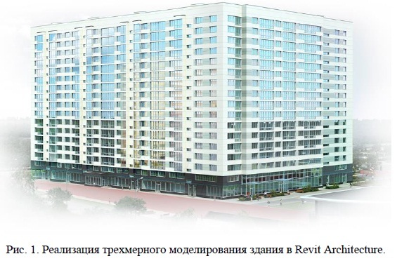 Рис. 1. Реализация трехмерного моделирования здания в Revit Architecture.