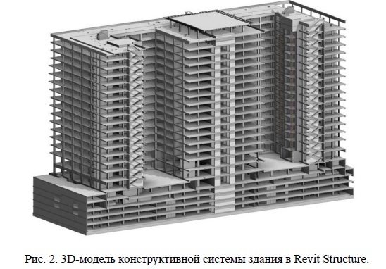 Рис. 2. 3D-модель конструктивной системы здания в Revit Structure.