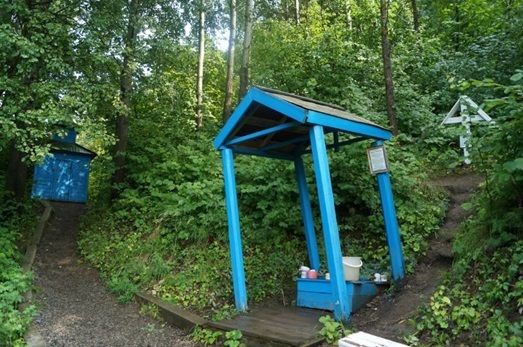 Следующим объектом туристического маршрута может стать Спасо-Преображенская пустынь «Старцев угол», представляющая собой одну из святынь православия [6]. Данная местность овеяна легендами и имеет давнюю историю, связанную с военным походом царя Ивана Васильевича на Казань и явлением к нему в это время чудотворца Спиридона Тримифунтского. На территории «Старцева угла» находится 3 источника: источник Николая Чудотворца (рис. 2.), источник чудотворца Спиридона Тримифунского и Спасов источник. Истрия появления источников описана еще в летописях Почаевской Лавры. В настоящее время это место пользуется популярностью у людей с трудными жизненными ситуациями, желающими уединения, тишины и спокойствия.