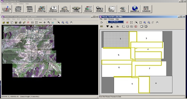 Рис. 3. Процесс создания мозаики изображений на территорию г. Саранска в ERDAS IMAGINE 8.4. [18].