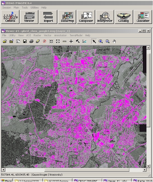 Это необходимо также для того, чтобы была возможность представить результат исследования в виде карты структуры застроенной территории. Для этого необходимо было перейти от системы координат WGS-84, в которой размещены космические снимки в Google Earth к СК-42.