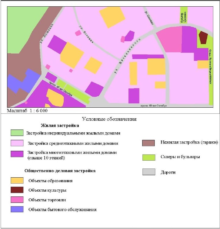 Рис. 6. Карта структуры застройки тестового участка в Пролетарском районе г. о. Саранск.