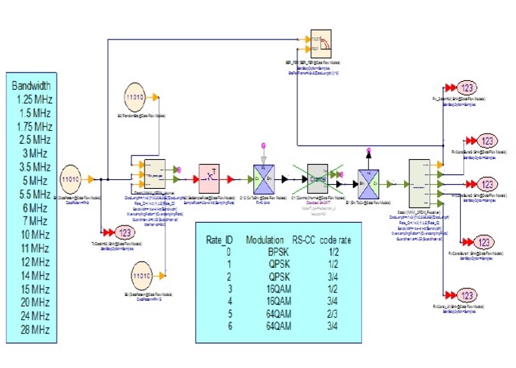 Для оценки производительности системы с OFDM в SystemVue построена схема WNW_OFDM_Rx (рисунок 2). Эта схема используется для имитации BER в каналах с замиранием. BER характеризует частоту появления ошибочно восстановленных битов в демодулированном потоке данных.