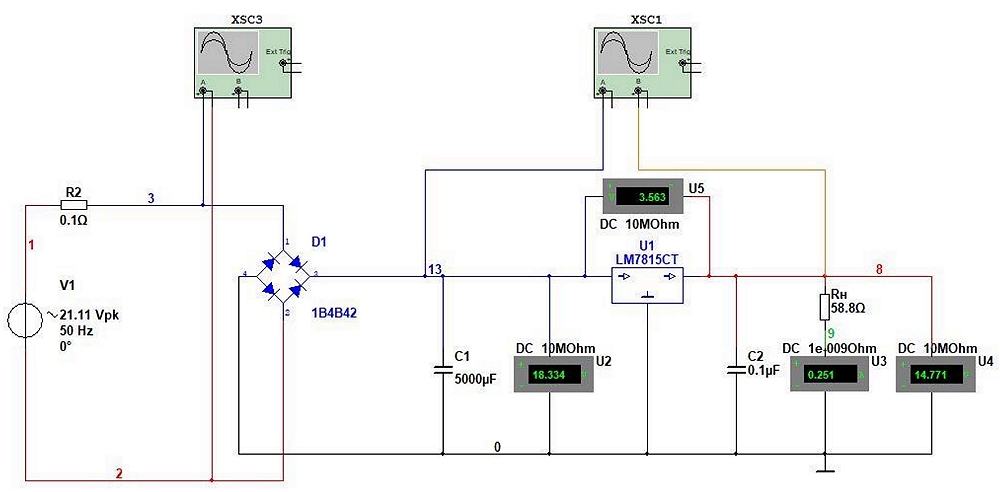 При изменении напряжения сети, параметров трансформатора и конденсатора С1, также меняется мощность Pст, которая выделяется в силовой цепи микросхемы стабилизатора. Эта мощность можно определить по формуле: