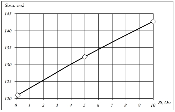 Рис. 6. График зависимости площади поверхности радиатора Sохл от сопротивления вторичной обмотки Ri..