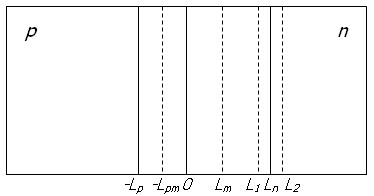 Когда на p–n-переход подано напряжение Vm < VM, область пространственного заряда уменьшится до Lm, глубокие центры в области от Lm до Ln заполняются электронами со стороны n-базы. В области от –Lp до Lm установившееся при Vm стационарное распределение заряда не изменяется. При приложении напряжения V2 >Vm, ОПЗ увеличится, соответственно увеличится напряженность электрического поля. Со стороны n-базы граница ОПЗ при этом напряжении соответствует L2 (рис. 2), со стороны p-области граница ОПЗ при напряжении V2 не показана, т.к. заполнение ГЦ в этой части ОПЗ не изменяется.