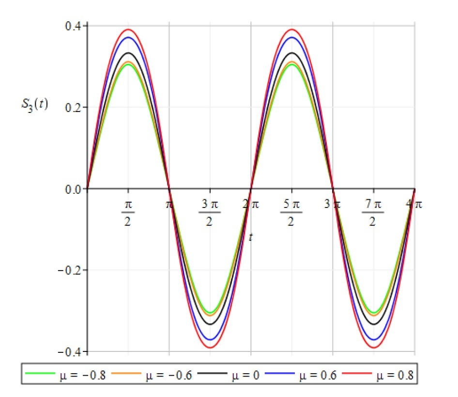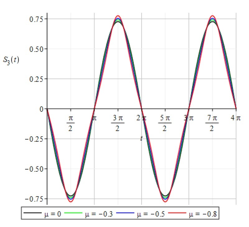 Приведем результат работы программного модуля для n = 3, реализующего алгоритм вычисления методом малого параметра 2𝜋-периодического решения неавтономного уравнения Дуффинга при условии, что значение собственной частоты находится вдали от резонансных значений.