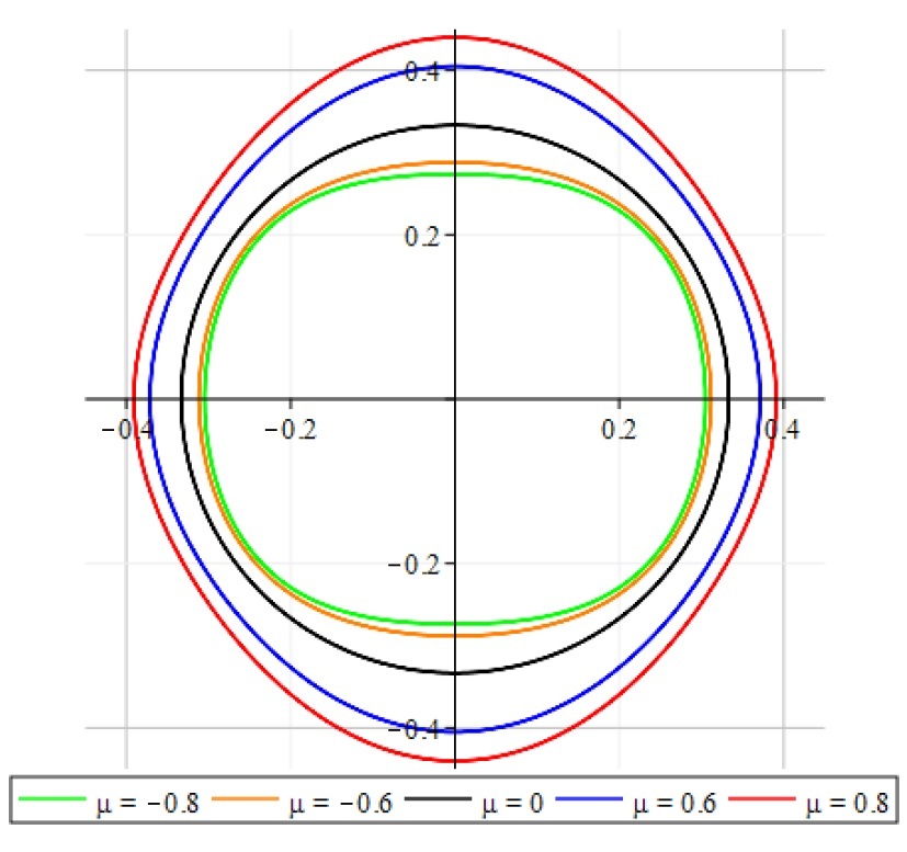 Рис. 2. Графики фазовых траекторий уравнения (1) в случае отсутствия резонанса при различных значениях параметра μ.
