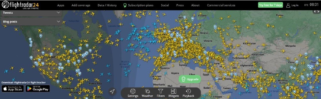 Будем использовать большие данные полученные с ресурса с открытым Api Flightradar24. Flightradar24 – это система отслеживающая авиасообщение всего мира в режиме реального времени. Здесь аккумулированы данные технологий ADS-B, MLAT, авиа-радаров и сведения о расписании, статусе рейсов от авиакомпаний и аэропортов [2].