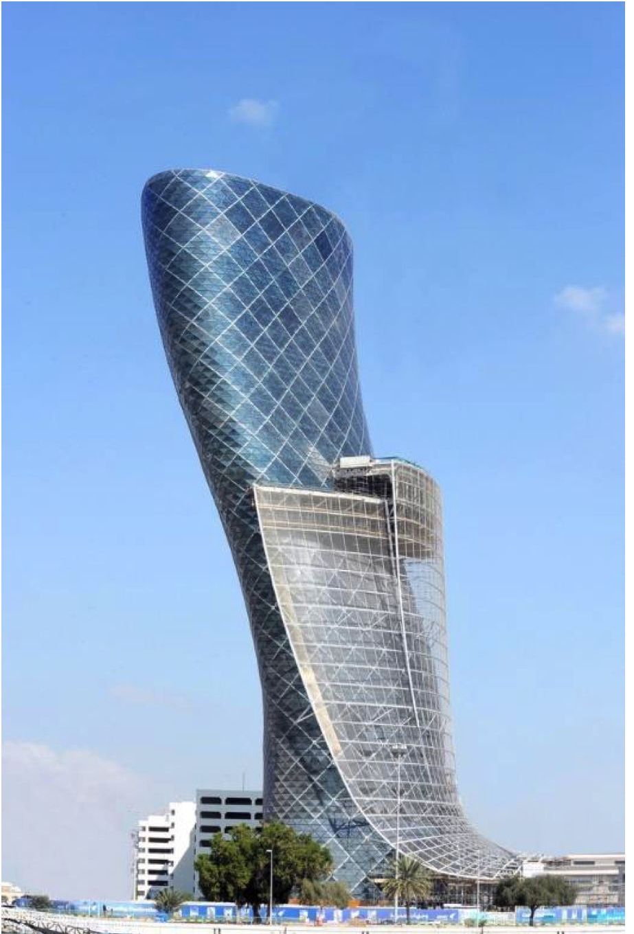 Отель «Capital Gate» (рис. 2) – визитная карточка делового района Capital Center. Владелец-разработчик: Abu-Dhabi National Exhibitions Company. Здание расположено рядом с символом Ближнего Востока – Национальным выставочным центром в Абу-Даби. Небоскреб занесен в Книгу рекордов Гиннеса, как здание с самым большим уклоном в мире. Отклонение от вертикальной оси составляет 18°, что в четыре раза больше, чем у Пизанской башни.