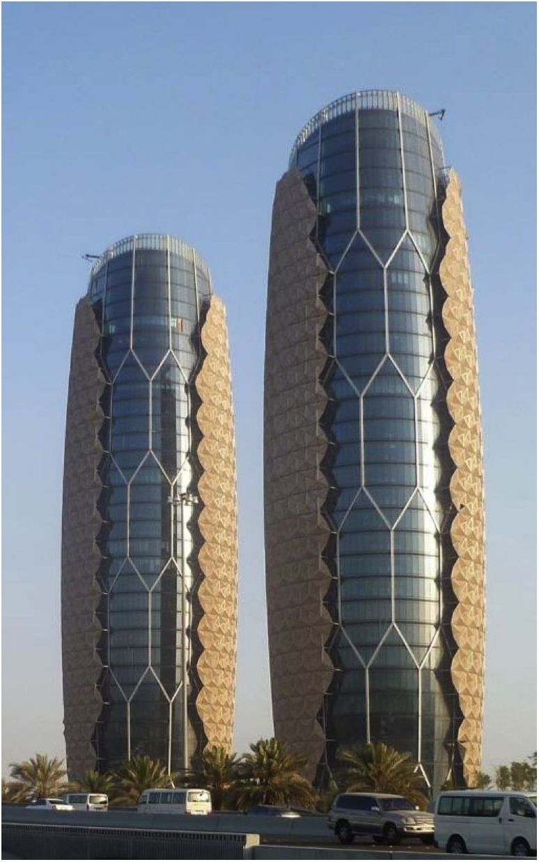 Al Bahar (рис. 3) – комплекс башен-близнецов в Абу-Даби, построенный в 2012 году. 29-этажные башни сочетают классический арабский стиль с новейшими технологиями. Здания достигают высоты 145 метров и общей площади 70 000 квадратных метров. Созданием комплекса занималась британская компания «AHR», а возведение доверили местной компании «Al-Futtaim Carillion». Они получили премию за поддержку экологии (LEED), а также за современное строительство небоскребов (Emporis Skyscraper Award). В одном из зданий находится Центр городского инвестиционного совета (ADIC).