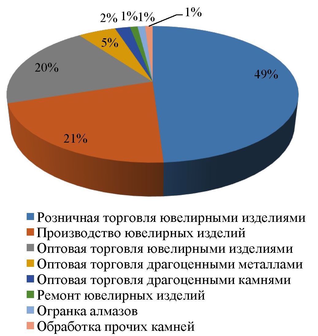 Рис. 1. Виды деятельности в ювелирной отрасли России на 2020 год [составлено по источнику 6].