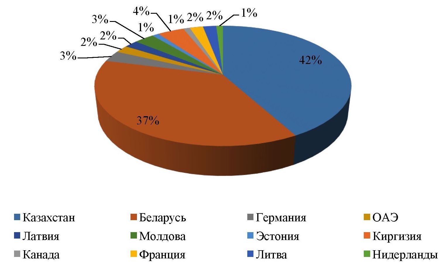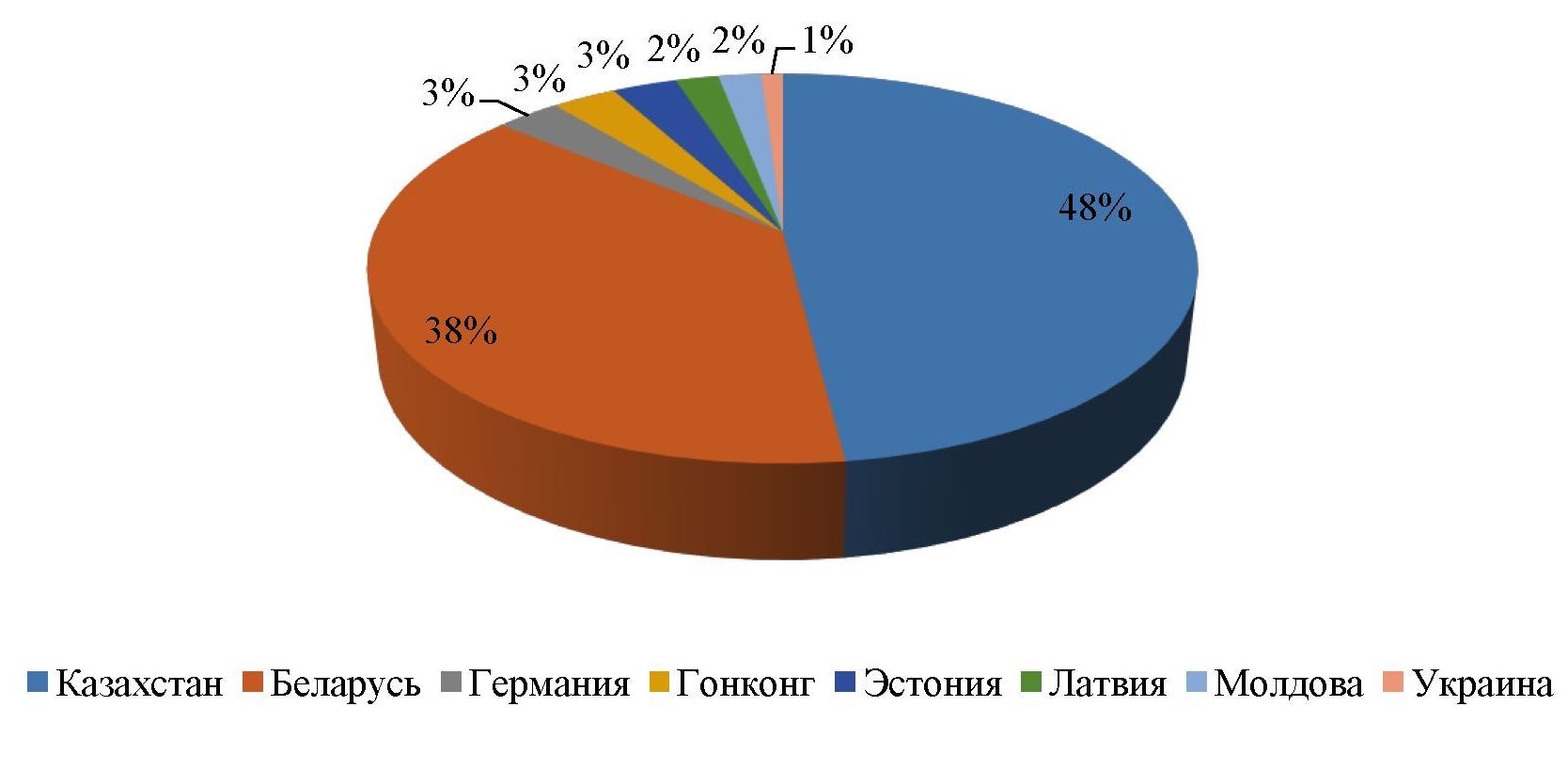 Экспорт серебряных изделий по странам мира (рисунок 3), подтверждают статус Казахстана и Беларуси как главных торговых партнеров, остальные покупатели – европейские страны (Германия, Эстония, Латвия, Молдова, Украина) и Гонконг.