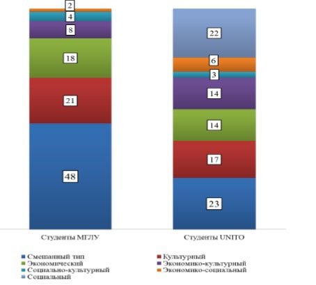 Рис. 5. Типология студентов МГЛУ и UNITO согласно их социальным ожиданиям, %