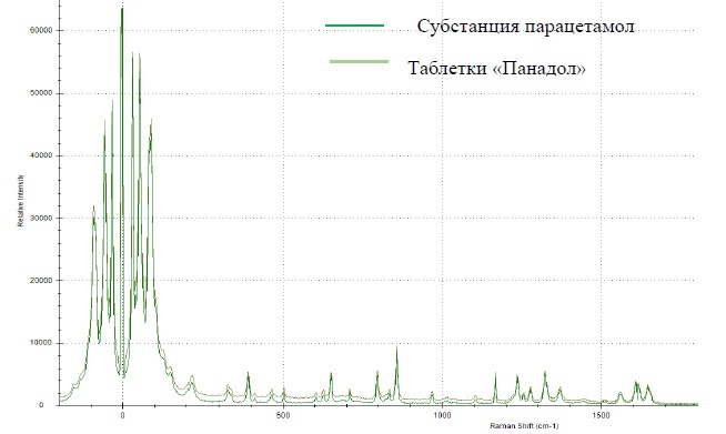 Рис. 5. Спектры комбинационного рассеяния таблеток растворимых «Панадол» АО «ГлаксоСмитКляйн» и субстанции парацетамола.