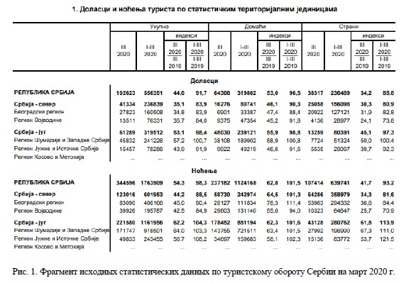Рис. 1. Фрагмент исходных статистических данных по туристскому обороту Сербии на март 2020 г.
