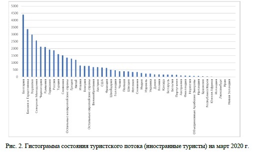 Рис. 2. Гистограмма состояния туристского потока (иностранные туристы) на март 2020 г.