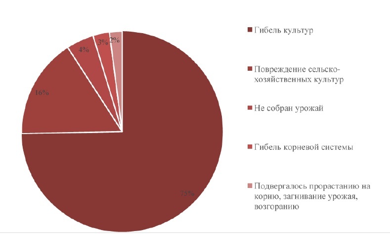 Ущерб сельскому хозяйству составил 954 миллиона рублей, от общей суммы это составляет 9%, наибольшая доля которой приходится на гибель сельскохозяйственных культур и равно 54%. В разные годы урожай по разным причинам не был собран с 702 тысяч гектар.