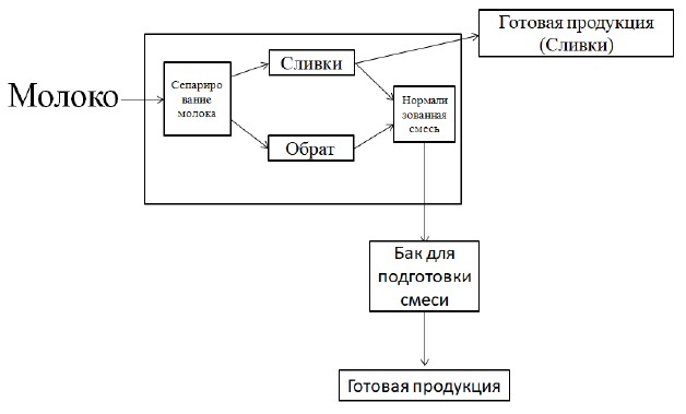 Рис. 2. Схема переработки молока на городском молочном заводе.